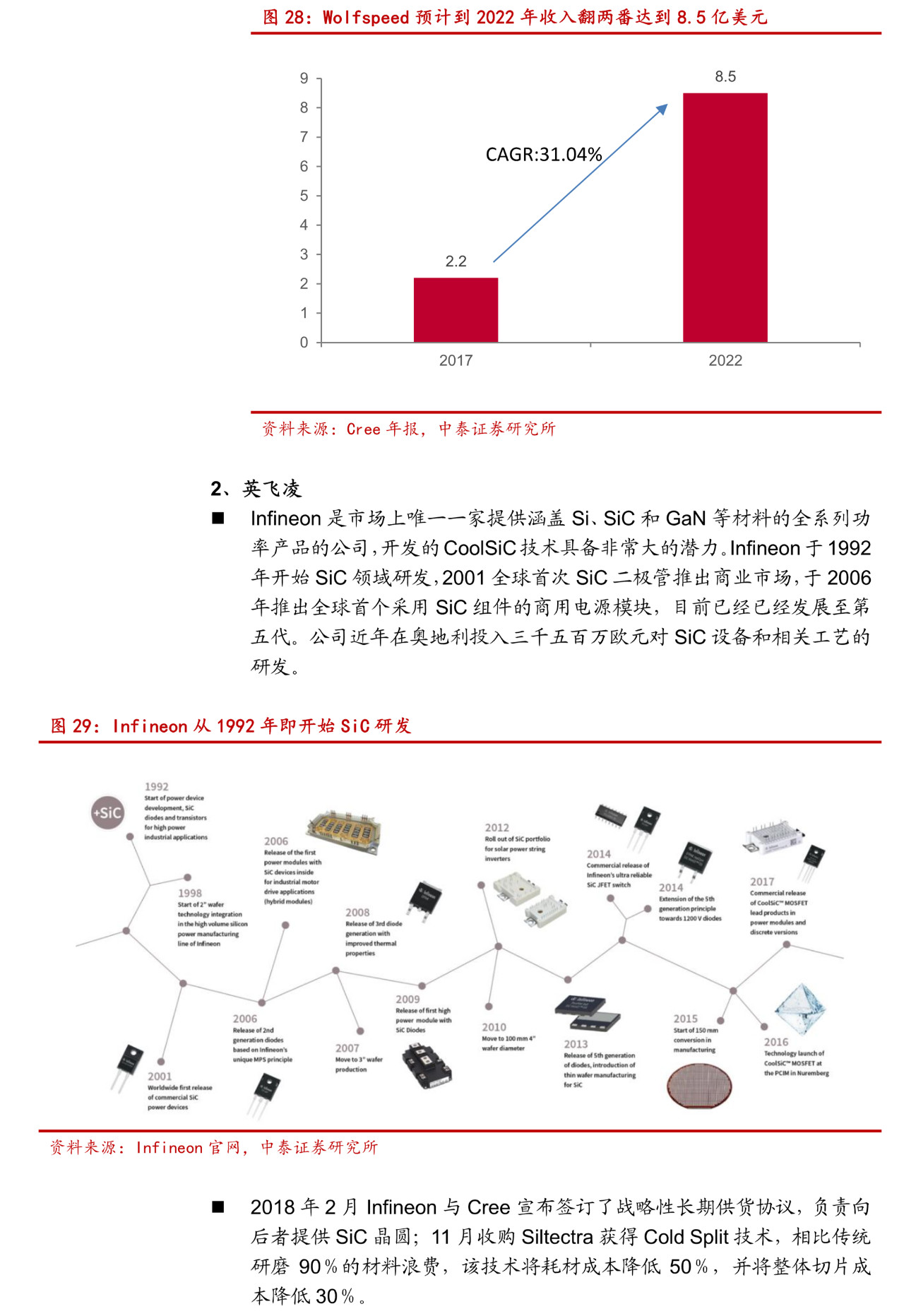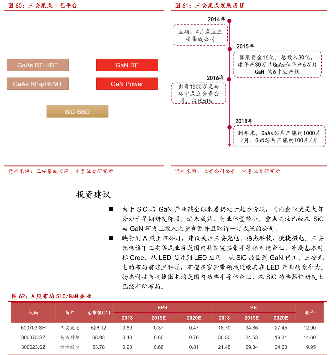 随着 5G、汽车等新市场出现,SiC/GaN 不可替代的优势使得相关产品的研发与应用加速;随着制备技术的进步,SiC 与 GaN 器件与模块在成本上已经可以纳入备选方案内,需求拉动叠加成本降低,SiC/GaN 的时代即将迎来。
