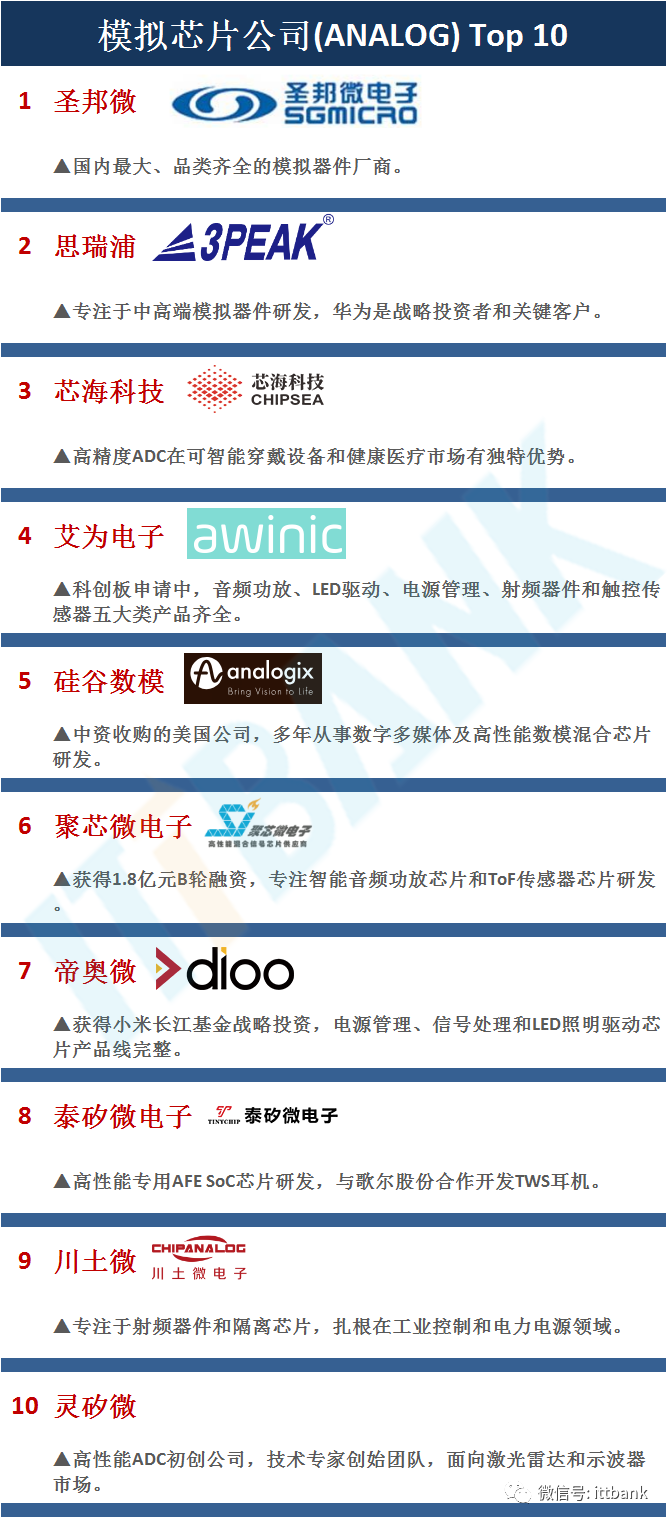 ASPENCORE在2021年中国IC领袖峰会上重磅发布“中国IC设计100家排行榜”,向中国半导体业界人士展示了100家最优秀的IC设计公司。将上榜的企业分为10个类别,从每个类别约30家公司中挑选Top 10,最终形成“中国IC设计100家排行榜”。